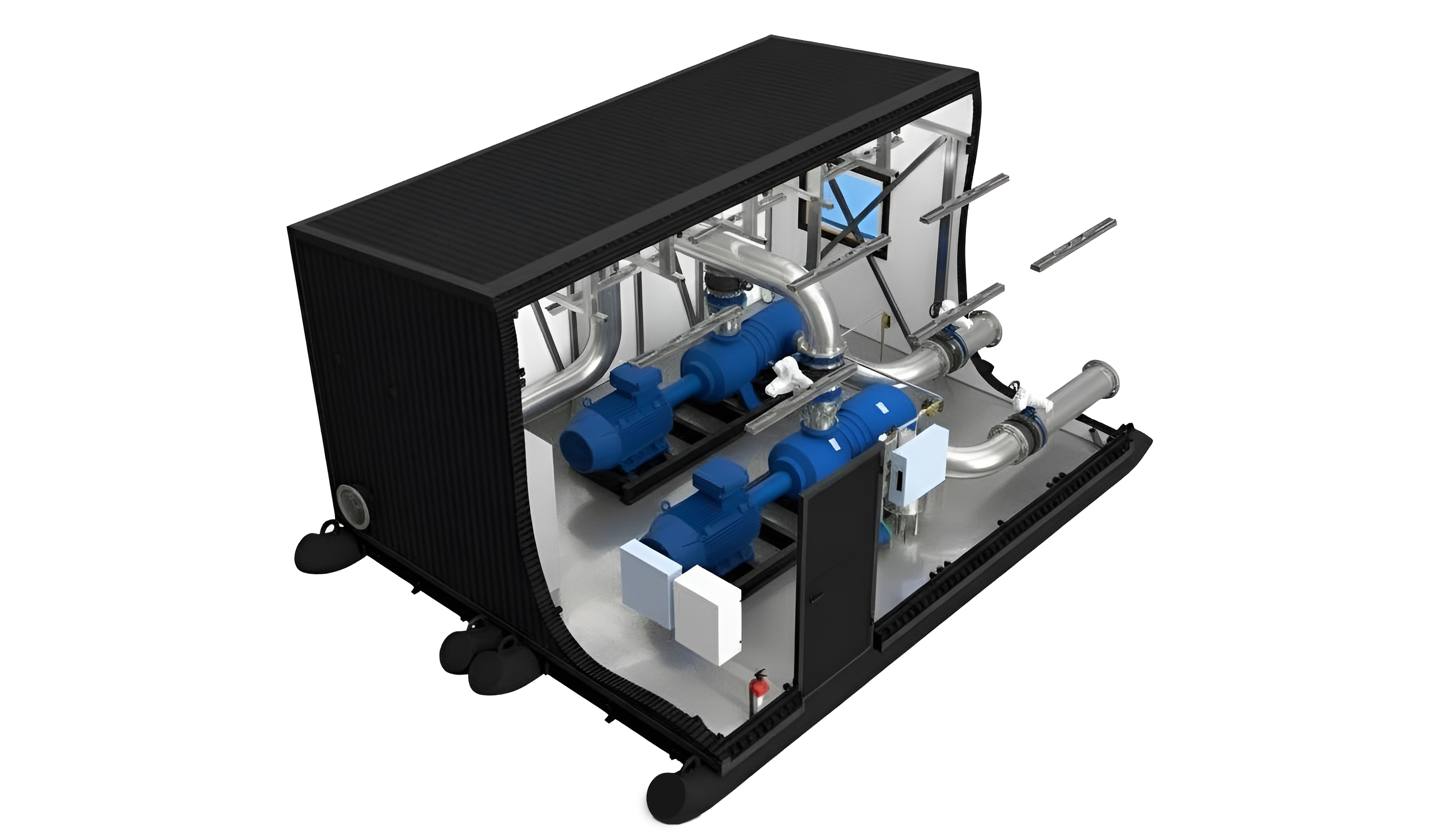Насосная станция размещается в специально изготовленном сооружении - блок-модуле, имеющем необходимую степень огнестойкости. Основным конструктивным элементом блок-бокса является стальной каркас, на который смонтированы ограждающие конструкции из сэндвич-панелей. Предусматривается антикоррозионная защита стальных строительных конструкций блок-модуля согласно СП 28.13330.2012. Блок-модуль имеет системы основного и аварийного освещения, системы вентиляции и отопления, системы ограничения доступа. Для эксплуатации и ремонта технологического оборудования, арматуры и трубопроводов, предусматривается наличие в блок-боксе соответствующего подъемно-транспортного оборудования.
