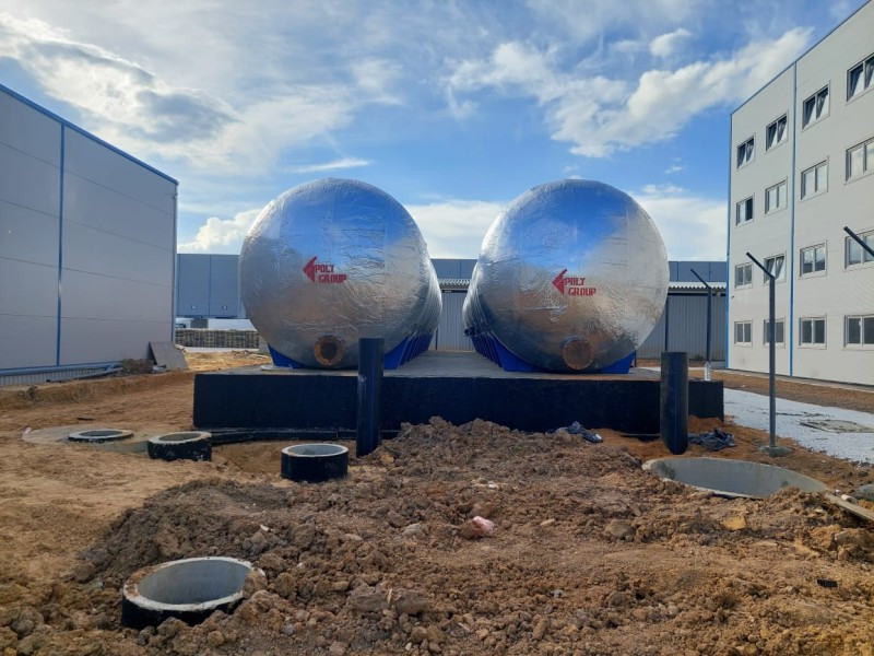 При отсутствии возможности подземной установки (вечная мерзлота, скальная порода), а так же при наличии требований к мобильности (перемещение по вахтовым поселкам) применяют наземную установку. Накопительные емкости могут быть выполнены с ложементами и утеплением. Недостатком такого вида установки является необходимость подачи стока насосными станциями, а так же применение усиленных корпусов, что повышает стоимость оборудования.