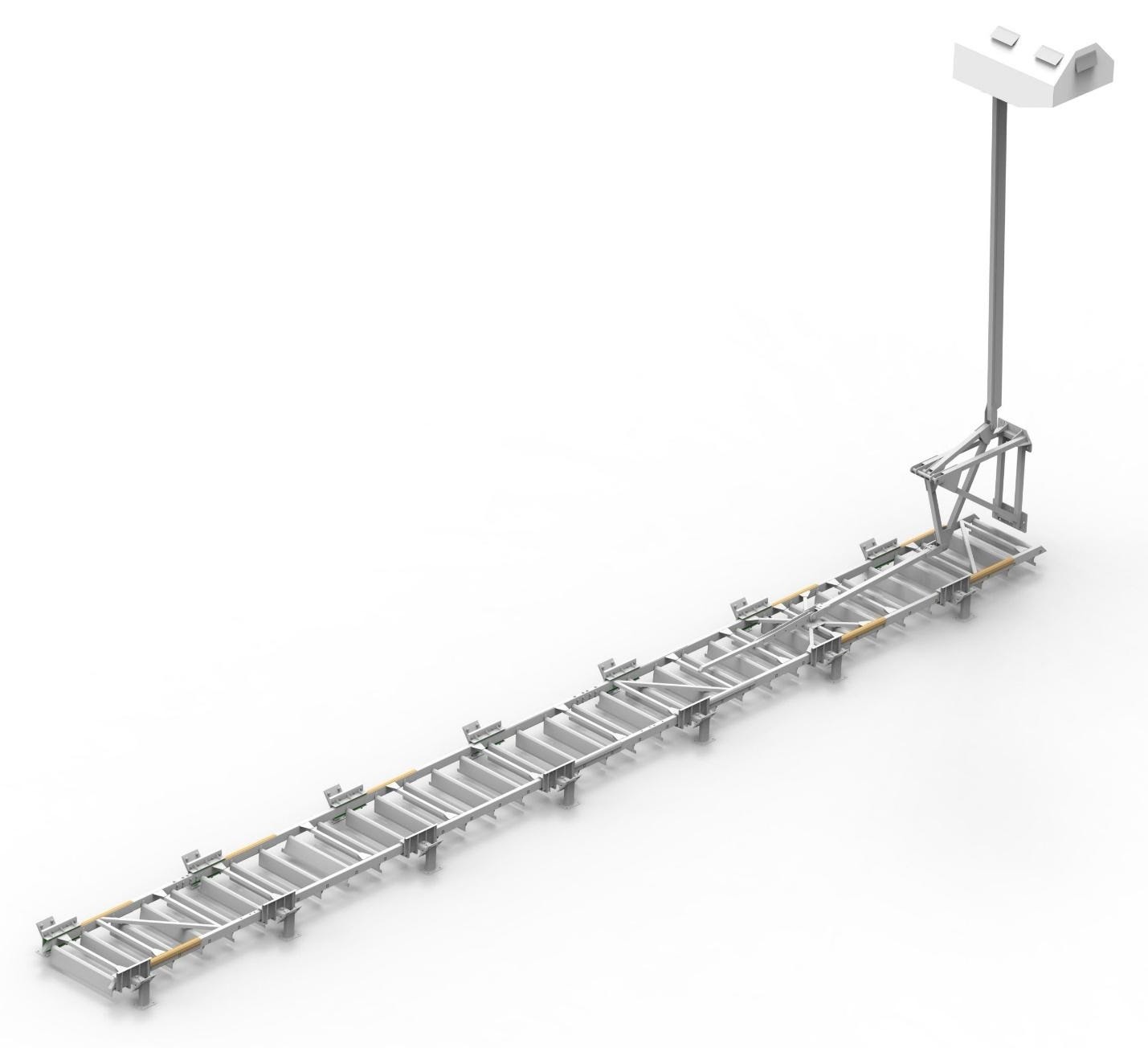 Скребковый механизм крепится к основанию песколовки и к одной из вертикальных стен и поддерживается на дне резервуара боковыми опорами.