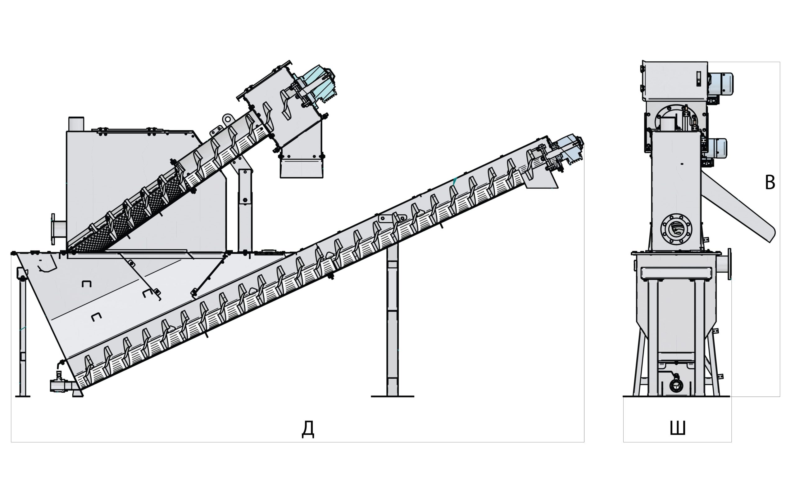 гидроэлеватором или насосом, посредством которого осадок будет удаляться из очистного устройства и передаваться в место, где из него будет удаляться жидкость.